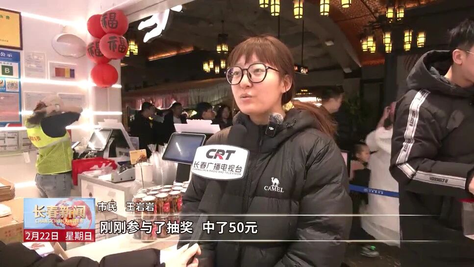 市民 王岩岩:刚刚参与了抽奖,中了50元,特别好、特别开心,过年氛围也特别浓。